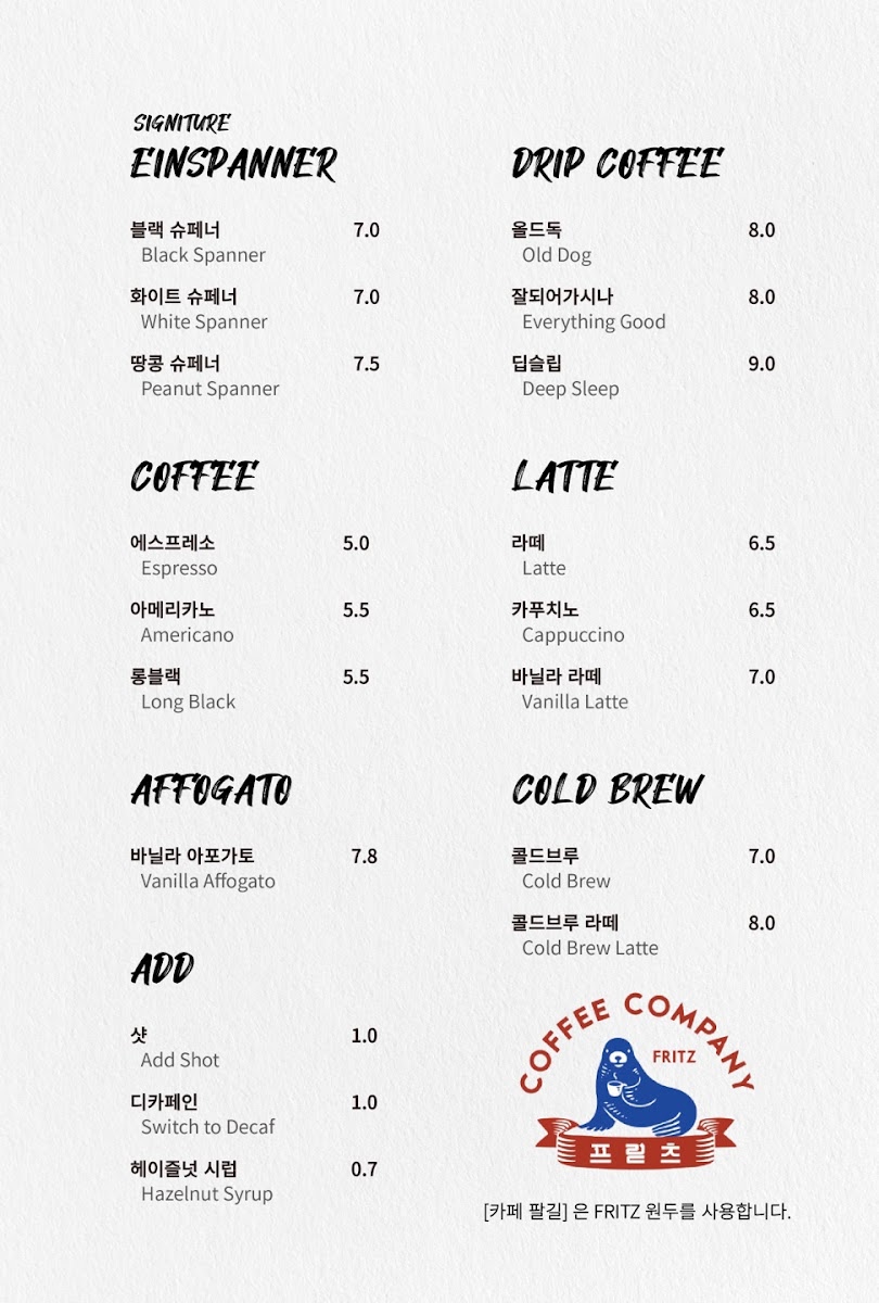 - Exquisite Teas: Sip on refreshing Fruit Tea options like Hallabong or Citron Ginger at ₩7,000, or choose a comforting Tea bag selection for the same price.